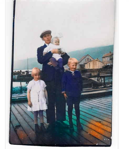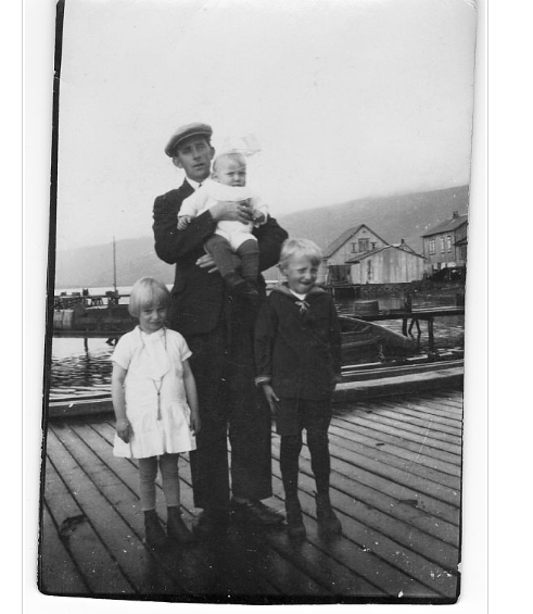, Á hennir er langafgi minn, Björn Ingimar Tómas Jónasson, með þrjú af börnum sínum. Móðuramma mín, Vigdís Júlíana Björnsdóttir, er stúlkan í hvíta kjólnum.