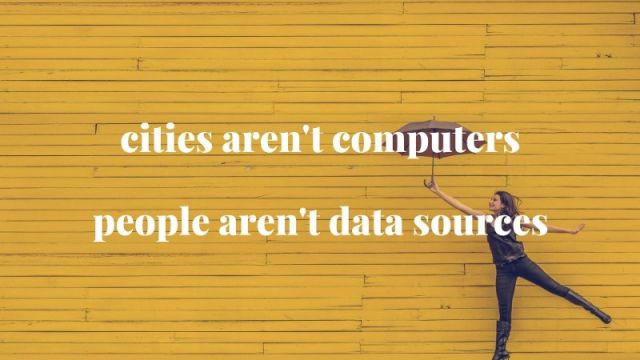 - Ég er upptekinn af því að hugsa um gögn og borgir (það sem stundum er kallað snjallborgir). Hér er góð grein um það: A City Is Not a Computer. (Myndinni að ofan stal ég úr fyrirlestri aimee whitcroft hér).